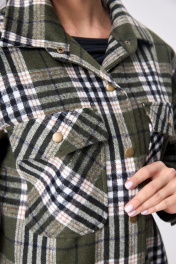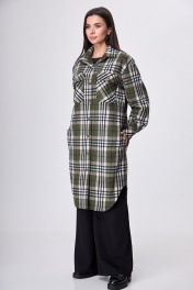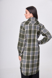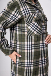 Рубашка пальтовая клетка миди с поясом на каждый день Anelli 935 зеленая_клетка