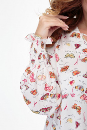 Легкая и порхающая как бабочка - так себя почувствует любая девушка в новой блузе от Anelli! Блуза прямого свободного силуэта средней длины из нежной блузочной ткани. На передней части выполнена сборка по плечевым швам, V образный вырез горловины украшен шнуровкой Рукава втачные длинные, свободного объема, на широкой эластичной манжете с воланом. Линия низа асимметрична - спинка слегка удлинена относительно переда, закругленной формы, дополнена небольшими разрезами в боковых швах. Прекрасно сочетается с брюками и юбками. При съемке в образе использованы брюки Anelli Style – 700.1 винных тонов. Замеры: Рост фотомодели – 170 см. Размер фотомодели – 54. ОГ-обхват груди; ОТ-обхват талии; ОБ-обхват бедер; ДИ-длина изделия; ДР-длина рукава (от выреза горловины). Размер 46. ОГ- 104; ОТ-104; ОБ -104; ДИ-67; ДР–79. Размер 48. ОГ- 108; ОТ-108; ОБ -108; ДИ-67; ДР–79. Размер 50. ОГ- 112; ОТ-112; ОБ -112; ДИ-67; ДР–79. Размер 52. ОГ- 116; ОТ-116; ОБ -116; ДИ-68; ДР–79. Размер 54. ОГ- 120; ОТ-120; ОБ -120; ДИ-68; ДР–79.