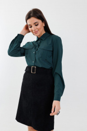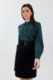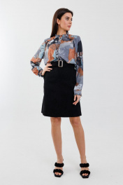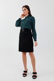 Юбка женская, силуэт трапеция, длина до колена. Высокая посадка, подчеркивающая вашу талию и визуально удлиняющая ноги. Дополнительно можно подчеркнуть талию при помощи съемного пояса. По спинке декоративные клапаны на бедрах, в среднем шве потайная застежка-молния. Функциональные карманы в боковых швах. Есть подкладка из полиэстера. Замеры: Размер 42: ОТ-66; ОБ-92; ДИ-57; Размер 44: ОТ-70; ОБ-96; ДИ-57; Размер 46: ОТ-74; ОБ-100; ДИ-57,5; Размер 48: ОТ-78; ОБ-104; ДИ-58; Размер 50: ОТ-82; ОБ-108; ДИ-58