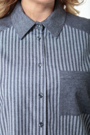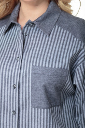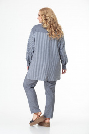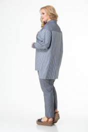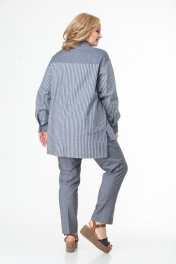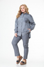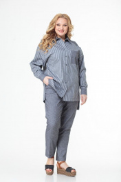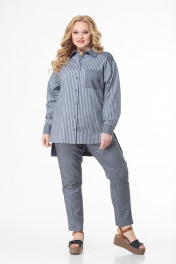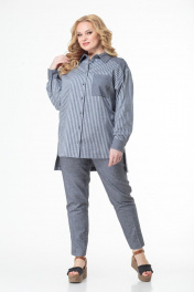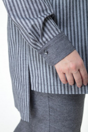 Комплект состоит из удлинённой блузы и брюк. Выполнен из хлопка высокого качества в компаньоне «полоска и однотон». Блуза прямого свободного силуэта со спущенными рукавами на манжетах, отлажной воротник на стойке. Функциональная застёжка на пуговицы по всей длине. Кокетка, накладной карман, воротник на стойке и манжеты выполнены из однотонного полотна. Низ блузы ассиметричный. Брюки высокой посадки на притачном поясе, сзади на резинке. Застежка спереди на молнии, боковые функциональные карманы. Комплект удобен, подходит для каждого дня и может комплектоваться с другими предметами гардероба. Выполнен в двух оттенках серого и голубого тонов. Замеры: Рост фотомодели 170 см. Размер фотомодели – 54. ОГ-обхват груди; ОТ-обхват талии (брюки – резинка в сборе/растянута); Об-обхват бедер; ДИ-длина изделия (блуза по переду/по спинке); ДР-длина рукава. Размер 52. Блуза: ОГ-110; ОТ-116; ОБ-116; ДИ-85/76; ДР-55 Брюки: ОТ-84/114; ОБ-114; ДИ-104 Размер 54. Блуза: ОГ-114; ОТ-120; ОБ-120; ДИ-85/76; ДР-55 Брюки: ОТ-84/120; ОБ-120; ДИ-104 Размер 56. Блуза: ОГ-118; ОТ-124; ОБ-124; ДИ-85/76; ДР-55 Брюки: ОТ-86/124; ОБ-124; ДИ-104 Размер 58. Блуза: ОГ-122; ОТ-128; ОБ-128; ДИ-85/76; ДР-55 Брюки: ОТ-90/128; ОБ-128; ДИ-104 Размер 60. Блуза: ОГ-126; ОТ-132; ОБ-132; ДИ-85/76; ДР-55 Брюки: ОТ-94/132; ОБ-132; ДИ-104 Размер 62. Блуза: ОГ-130; ОТ-136; ОБ-136; ДИ-85/76; ДР-55 Брюки: ОТ-98/136; ОБ-136; ДИ-104