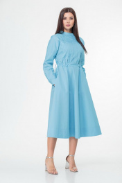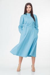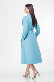 Классическое хлопковое платье-с футляр с складками и карманами Anelli 998 голубой