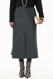 Женская юбка из гладкой однотонной ткани с атласной структурой - тренд этого года. Французская длина и крой по косой создает элегантный силуэт и подчеркивает фигуру. Юбка поможет создать нарядный образ на праздник, а также модный стильный образ на работу и в офис. Юбка на резинке, трапециевидного силуэта с высокой талией. Длина юбки: 86 см