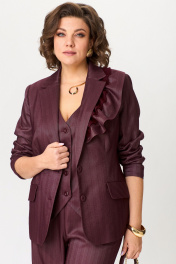 Стильный брючный комплект-тройка с широкими брюками подчеркнет Вашу женственность и придаст образу элегантность. Однобортный жакет полуприталенного силуэта, на подкладке, с плечевыми накладками. Воротник пиджачного типа с отложными лацканами. По переду центральная застежка на петли и пуговицы и прорезные карманы с клапаном, талиевые вытачки и рельефы. Полочку жакета украшает декоративная съемная рюша на пуговицах. Низ бортов закругленной формы. Спинка со средним швом и рельефами. Рукав втачной двухшовный длинный. Жилет прилегающего силуэта с центральной бортовой застежкой на петли и пуговицы, на подкладке. Вырез горловины V-образной формы. Перед - с талиевыми вытачками и прорезными карманами с листочкой. Спинка со средним швом и талиевыми вытачками. Широкие брюки с высокой посадкой, с поясом на резинке. В боковых швах имеются функциональные наклонные карманы. Длина жакета: 65 см Длина рукава: 61 см Длина жилета: 52 см Длина брюк (с поясом): 114 см