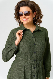 Стильное женское платье-рубашка станет незаменимым элементом вашего гардероба. Платье идеально сочетает строгий стиль со свободным кроем, скрывающим недостатки и подчеркивающим достоинства фигуры. Платье выполнено из приятной на ощупь плательной ткани, что обеспечит комфорт и свободу движений. Благодаря универсальному дизайну отлично подойдет как для офиса, так и для повседневной жизни. Платье прилегающего силуэта, отрезное по линии талии. Воротник отложной, на притачной стойке. Перед платья с центральной застежкой на петли и пуговицы. В верхней части платья прилегание создается по полочке за счет нагрудных и талиевых вытачек, по спинке - за счет талиевых вытачек. Юбка - полусолнце, с карманами в боковых швах. Рукав втачной длинный, понизу - притачная манжета с застежкой на петлю/пуговицу. В комплекте пояс из основной ткани. Длина платья: 108 см Длина до талии: 42 см Длина рукава: 57 см