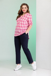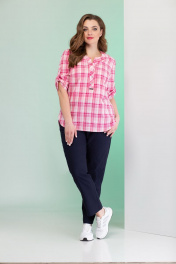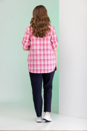 Летняя розовая блузка из текстиля с коротким рукавом на пуговицах Angelina & Сompany 381 розовый