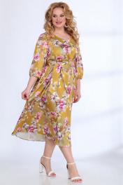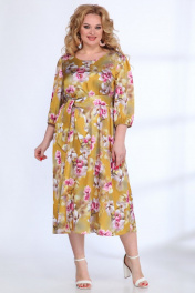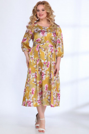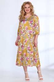 Платье свободного силуэта с резинкой и поясом ANIDEN 516 желтые_орхидеи