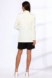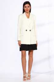 Классический женский жакет свободного кроя. Жакет с двубортной застежкой на две петли-пуговицы. По переду жакета расположены прорезные функциональные карманы с клапанами. Спинка прямая со средним швом. Рукав прямой двухшовный. На подкладке полностью, верхняя ткань не очень плотная