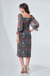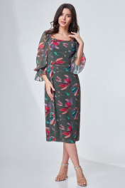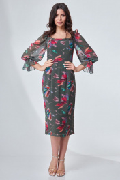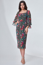 Создайте элегантный образ надев платье с интересным принтом. Это платье является всесезонным. Просто смените сапоги на босоножки, пальто на жакет и в любое время года платье дополнит Ваш стильный образ. Платье женское из шифона, приталенного силуэта, на подкладке. Вырез горловины квадратной формы. Отрезное по линии талии. Перед и спинка с рельефами. По спинке средний шов, в котором вставлена потайная молния, внизу разрез. Рукав втачной длиной 3/4, по окату присборен на резинку, в нижней части рукава сборка на венгерку." Длина платья: 99 см Длина от талии: 75 см Длина рукава: 54 см