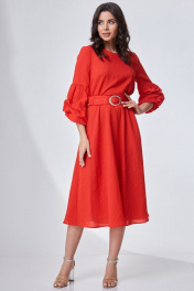 Яркое изысканное платье подойдет для особых случаев, украсит любую женщину, независимо от возраста. Прекрасно подходит как для создания повседневных луков, так и для особых случаев. Платье полуприлегающего силуэта, расклешенное книзу из жатой ткани. С округлым вырезом горловины. Платье отрезное по линии талии. По переду обработаны нагрудные вытачки. Спинка с застежкой молнией в среднем шве. Рукав втачной динный, на резинке понизу, с горизонтальным подрезом и с защипами. Пояс из основной ткани с пряжкой. Длина изделия: 114 см Длина до талии: 38 см Длина рукава: 48 см