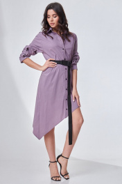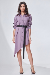 Эффектное женское платье подойдет для дружеской встречи или для свидания в кафе. В любой компании Вы точно будете выделяться из толпы. Платье прямого силуэта из хлопковой ткани с ассиметричной линией низа. Воротник рубашечного типа на притачной стойке. Перед платья с центральной застежкой на притачных планках на контрастные пуговицы. Спинка с кокеткой. Рукав втачной длинный, со спущенной плечевым срезом, понизу на притачной манжете с застежкой на пуговицу и декоративной планкой. В комплект входит пояс из стропы. Длина изделия: 55/90 см Длина рукава: 60 см