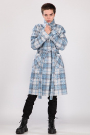 Демисезонное пальто свободного кроя с отложным воротником. По переду накладные карманы. По спинке средний шов. Рукав втачной длинный одношовный прямой, со спущенным плечевым срезом, по низу - с отложной манжетой, длина рукава легко регулируется с помощью отворота. В комплект входит съемный пояс из основной ткани. Длина по спинке: 102 см