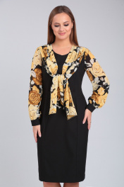 Стильное женское платье подчеркнет вашу индивидуальность и добавит нотку элегантности в ваш гардероб, даст возможность эффектно выглядеть на работе и в повседневной жизни. Платье женское полуприлегающего силуэта. Горловина полукруглой формы, обработана обтачкой. Перед с рельефными швами. В плечевых швах переда расположен декоративный шарфик. По линии талии в центральной части переда расположен декоративный пояс с пряжкой. Спинка с рельефными швами и средним швом, в котором расположена застежка на потайную молнию и шлица. Рукав втачной длинный, на манжете с застежкой на петлю и пуговицу. Длина платья: 101 см Длина рукава: 61 см
