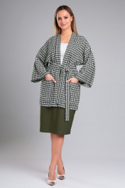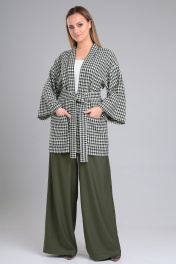 Зеленый свободный жакет-кимоно с принтом из текстиля Angelina & Сompany 957