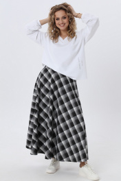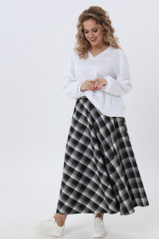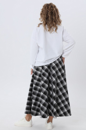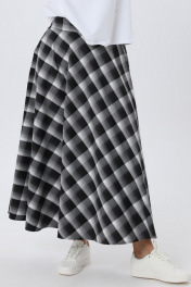 Эффектная женская юбка кроя полусолнце из плательной ткани в клетку — универсальная одежда на все случаи жизни. Юбка с легкостью впишется в любой образ, добавив нотку женственности и романтики. Она прекрасно комбинируется с вещами в классическом стиле или повседневном стиле «спорт-шик». Струящаяся ткань скроет недостатки фигуры и эффектно выделит достоинства. Юбка на широком притачном поясе. В боковых швах функциональные косые карманы и застежка на молнию. Длина юбки (с поясом): 98 см