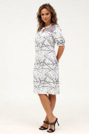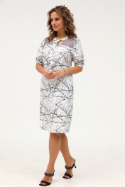 Лаконичное женское платье из качественной плательной ткани подойдет тем, кто ценит женственность и элегантность. Отлично подойдет для повседневной носки, офиса и работы. Платье полуприлегающего силуэта. Горловина платья округлой формы, обработана широкой обтачкой, переходящей по переду в завязки, имитирующее галстук. Перед с нагрудными вытачками, в верхней части расположена кокетка из сетки. Спинка с талиевыми вытачками и застежкой молнией от горловины в среднем шве. Рукав короткий втачной, по низу - замкнутая манжета со сборкой. Длина платья: 101 см . Длина рукава: 33 см.