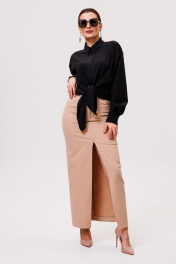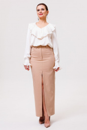 Миди юбка с карманами и разрезом из текстиля ANIDEN 123-1 бежевый