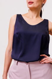 Полуприлегающий топ из тонкой ткани с V-образным вырезом ANIDEN 22-1 темно-синий