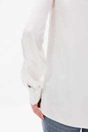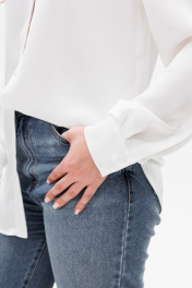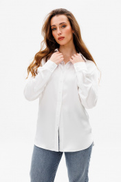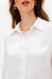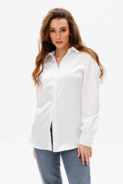 Латышская белая рубашка из атласа с разрезами и воротником-рубашкой ANIDEN 34-1 белый