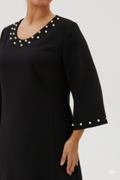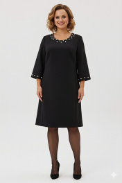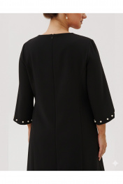 Платье на каждый день из костюмной ткани прямого силуэта умеренного объема. Вырез горловины округлый, по спинке застежка на потайную молнию, рукав 3/4 рубашечного покроя - 47см. Длина платья по спинке 97 см. Рост модели на фото 170см.