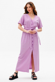 Приталенное миди платье из хлопка с расклешенной юбкой и карманами ANIDEN 77-1 лаванда