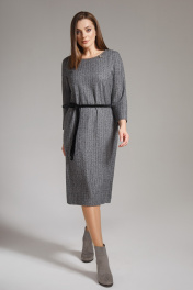 Платье на подкладке из трикотажного полотна с круглым вырезом, спущенной линией плеча и рукавами длиной ниже локтя. Платье комплектуется черным бархатным поясом. Подкладка - трикотажное полотно. Длина изделия - 107 см. Длина рукава от горловины - 62 см.