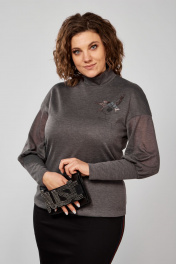 Джемпер из трикотажа с высокой стойкой и печатью Anna Majewska А338 серый