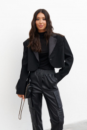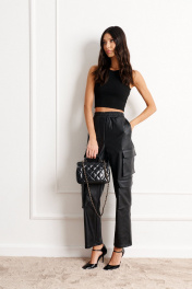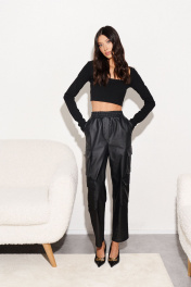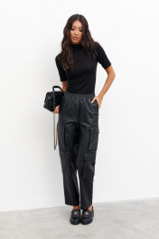 Брюки в стиле экокожа с карманами и резинкой ANNETE A1170
