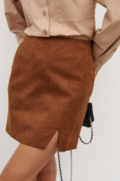 Юбка из замшевой ткани короткая с разрезом шоколадная ANNETE A1283/2