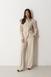 Брюки свободного кроя. Выполнены из штруксовой ткани (вельвет) светло-бежевого цвета. Пояс на резинке. В боковых швах карманы. Сзади накладные карманы.