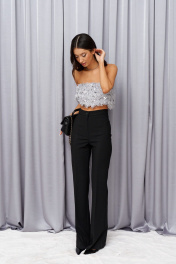 Нежнейший топ прилегающего силуэта выполнен из полотна светло-серого цвета с перьями. Акцентная нежная деталь Вашего образа. Характеристики: прилегающий силуэт, подкладка, прямой вырез горловины , верх и низ изделия на резинке. Длина изделия 24 см.