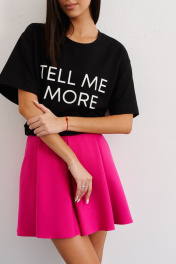 Миниатюрная юбка полуприлегающего силуэта выполнена из насыщенного розового полотна. Характеристики: полуприлегающий силуэт, подкладка, декоративные складки, застежка - потайная тесьма молния в среднем шве заднего полотна изделия, по переду прорезные карманы. Длина изделия 46 см.