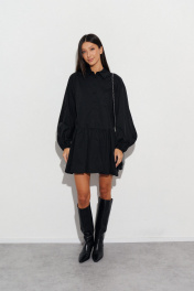 Черное платье из полотна с отложным воротником и резинкой ANNETE A3437
