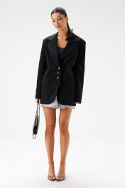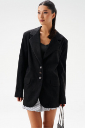 Жакет из эко-замши черный с классическим фасоном и пуговицами ANNETE A5326/4