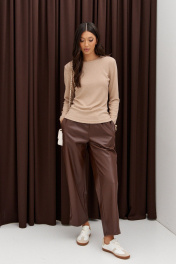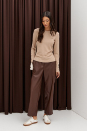 Бежевый прилегающий джемпер с овальной горловиной ANNETE A989