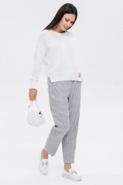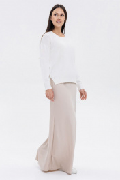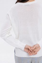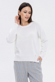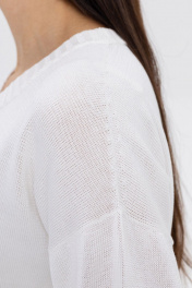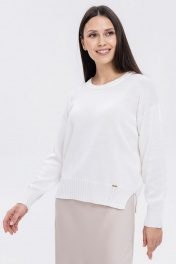 Джемпер гладкой, немного плотной фактуры отделан по рукавам и низу декором из мелких кос, что привлекает внимание на простом прямом силуэте. Круглый вырез, свободная форма с разрезами, длинный рукав, джемпер несомненно впишется в повседневный гардероб. Длина джемпера 58-64 см в зависимости от размера. Джемпер выполнен из мерсеризованной хлопковой пряжи. Рекомендуется ручная или машинная стирка до 40 градусов, с мягким моющим средством. Не рекомендуется использовать машинный отжим и сушку. Слегка отжать, не выкручивать, сушить лучше в горизонтальном положении. Утюжить с изнанки, можно с паром.