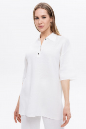 Трикотажный джемпер – рубашка из хлопка выполнен гладкой структурой. Прямая удлиненная и свободная форма, рукав до локтя, отложной воротник с планкой на пуговицах. Рубашка динамично сочетается с прямыми брюками мод.13701. Универсальная длина изделия от плеча составляет 71 см. Джемпер выполнен из мерсеризованной хлопковой пряжи. Рекомендуется ручная или машинная стирка до 40 градусов, с мягким моющим средством. Не рекомендуется использовать машинный отжим и сушку. Слегка отжать, не выкручивать, сушить лучше в горизонтальном положении. Утюжить с изнанки, можно с паром.