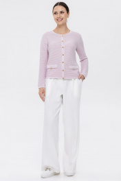 Трикотажный жакет на золотых пуговицах прямого силуэта с круглым вырезом, с планкой на пуговицах, с клапанами и длинным рукавом выполнен в модной цветовой гамме. Жакет сочетается в ансамбле с юбкой мод.13601 и или с джемпером без рукавов мод.13407. Длина жакета 52-58 см в зависимости от размера. Жакет выполнен из мерсеризованной хлопковой пряжи. Рекомендуется ручная или машинная стирка до 40 градусов, с мягким моющим средством. Не рекомендуется использовать машинный отжим и сушку. Слегка отжать, не выкручивать, сушить лучше в горизонтальном положении. Утюжить с изнанки, можно с паром.