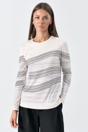 Джемпер женский приталенного силуэта изготовлен из мягкого трикотажного полотна. Горловина круглой формы, рукав длинный, втачной. Возможно отличие фотографии по оттенку, связанное с разной цветопередачей монитора. Длина по спинке 63, 63, 63, 63, 63, 63 Ширина изд на уровне проймы 47, 49, 51, 53, 55, 57 Длина рукава 60, 60, 60, 60, 60, 60 Ширина рукава на уровне глуб проймы 15.1, 15.8, 16.5, 17.2, 17.9, 18.6