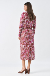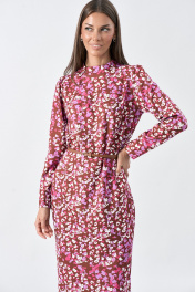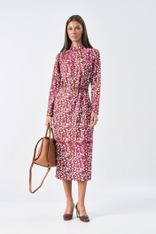 Платье полуприлегающего силуэта, выполнено из трикотажного полотна, с принтом. Платье с воротником-стойкой и центральной застежкой на тесьму-молнию по спинке. Рукав длинный, втачной. Изделие без подкладки.. Возможно отличие фотографии по оттенку, связанн Длина спинки 123, 123, 123, 123 Ширина изд на уровне проймы 46, 48, 50, 52 Длина рукава 61, 61, 61, 61 Ширина изд по линии талии 38, 40, 42, 44 Ширина изд на уровне линии бедер 50, 52, 54, 56 Ширина рукава на уровне глуб проймы 17.3, 18, 18.7, 19.4