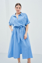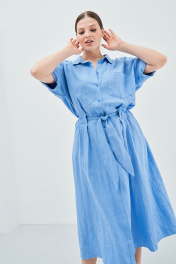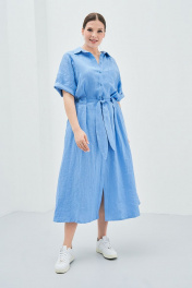 Свободное платье из льна с карманами, центральной застежкой и поясом Art Ribbon M3618P_1