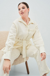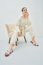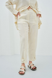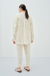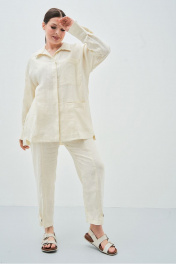 Леновый белый костюм из брюк и рубашки для лета Art Ribbon M3806