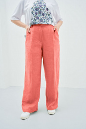 Натуральный лен - единственный материал, который способен охлаждать даже в самую сильную жару, поэтому изделия из такого материала пользуются невероятной популярностью. Остановив свой выбор на брюках свободного кроя из льняной ткани, Вы будете выглядеть презентабельно и чувствовать себя максимально комфортно. Брюки свободного кроя, с карманами в боковых швах и вытачками на задних половинках. Данная модель удачно сочетается с жилетом М3816J.