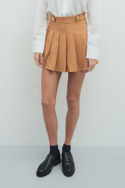 Юбка-шорты с высокой посадкой и складками. Застежка на потайную молнию сбоку.