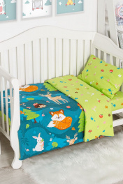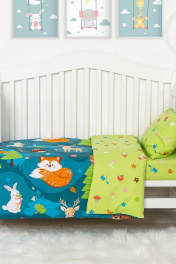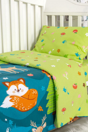 Детское постельное белье с изображением лесных героев станет ярким акцентом в интерьере. Перед нами волшебный лес с очаровательными персонажами. В окружении ёлочек, на цветочных полянках, живут медвежата, белочки, лисички, ёжики и многие другие. Наши лесные друзья не оставят равнодушными детей, малышей и родителей. Комплект из натуральной бязи обеспечит комфорт, а красочный дизайн подарит радость.Комплект постельного белья (бязь) детский. Тип ткани: Бязь Премиум Пододеяльник 1 шт: длина 147 см, ширина 112 см Простыня 1 шт: длина 150 см, ширина 110 см Наволочка 1 шт: 40*60 см