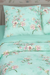 Постельное белье из поплина бирюзовое с клапанами и карманами АРТПОСТЕЛЬ 914 миндаль