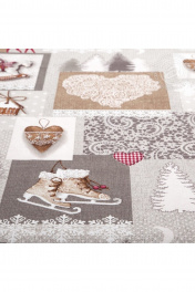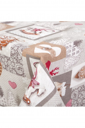 Назначение кухонное Плотность ткани,165 г/м.кв. Комплектация 1 скатерть Материал рогожка Рисунок изделия предоставляет широкий простор для фантазии. Спокойные серо-белые тона зимнего пейзажа органично сочетаются с красочными изображениями атрибутов Нового года. Фигурные коньки, резные узоры мороза на оконном стекле, пряничные елочные подвески. Ощущение близкого праздника дарит вам рисунок на ткани.