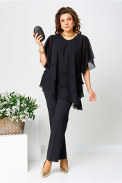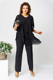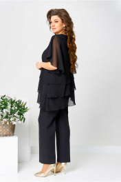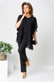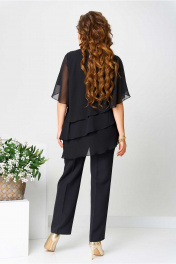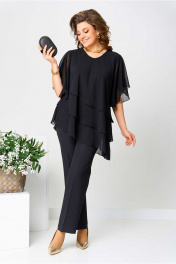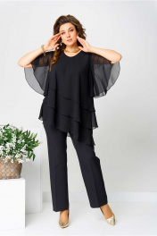 - ОписаниеКостюм брючный (двойка) женский свободного силуэта, состоит из блузки и брюк. Блузка с рукавом 3/4 с разрезом и фигурным низом. Изделие (блузка) трехслойное, все слои с асимметричным низом. Застежка-капелька на спинке. Брюки немного расширены к низу, на поясе с резинкой. Застежка на гульфик, на тесьму-молнию. Длина изделия: блузка - 74 (±1) см., брюки - 101 (±2) см. Длина рукава 35 (±1) см. Вид застёжки брюки - гульфик на молнию Объём груди блузка: размер 52 – 106 (±2) см.; размер 54 – 110 (±2) см.; размер 56 – 114 (±2) см. Объём талии блузка: размер 52 – 82 (±1) см. размер 54 – 86 (±1) см. размер 56 – 90 (±1) см. брюки: размер 52 – 88 (±2) см.; размер 54 – 92 (±2) см.; размер 56 – 96 (±2) см. Объём бёдер блузка: размер 52 – 110 (±1) см. размер 54 – 114 (±1) см. размер 56 – 118 (±1) см. брюки: размер 52 – 111 (±2) см.; размер 54 – 115(±2) см.; размер 56 – 119 (±2) см.
