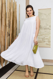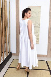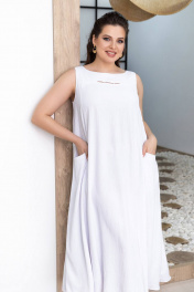 Белый летний сарафан трапеция с карманами и разрезами ASV 2357 белый