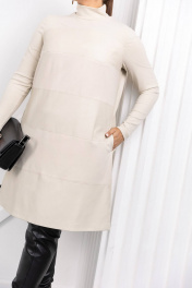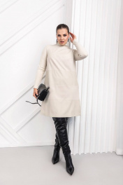 Платье трапеция комбинированное из вискозы и экокожи ASV 2454 бежевый