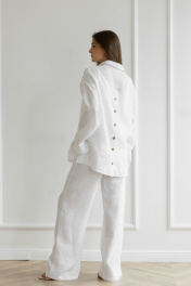 Летний леновый костюм брюки палаццо и свободная рубашка Atelero 1053 белый